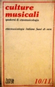 | Descrizione | *Culture musicali : quaderni di etnomusicologia : semestrale della Societa italiana di etnomusicologia A. 1, n. 1 (1982)- Roma : Bulzoni, 1982- v. ; 24 cm |